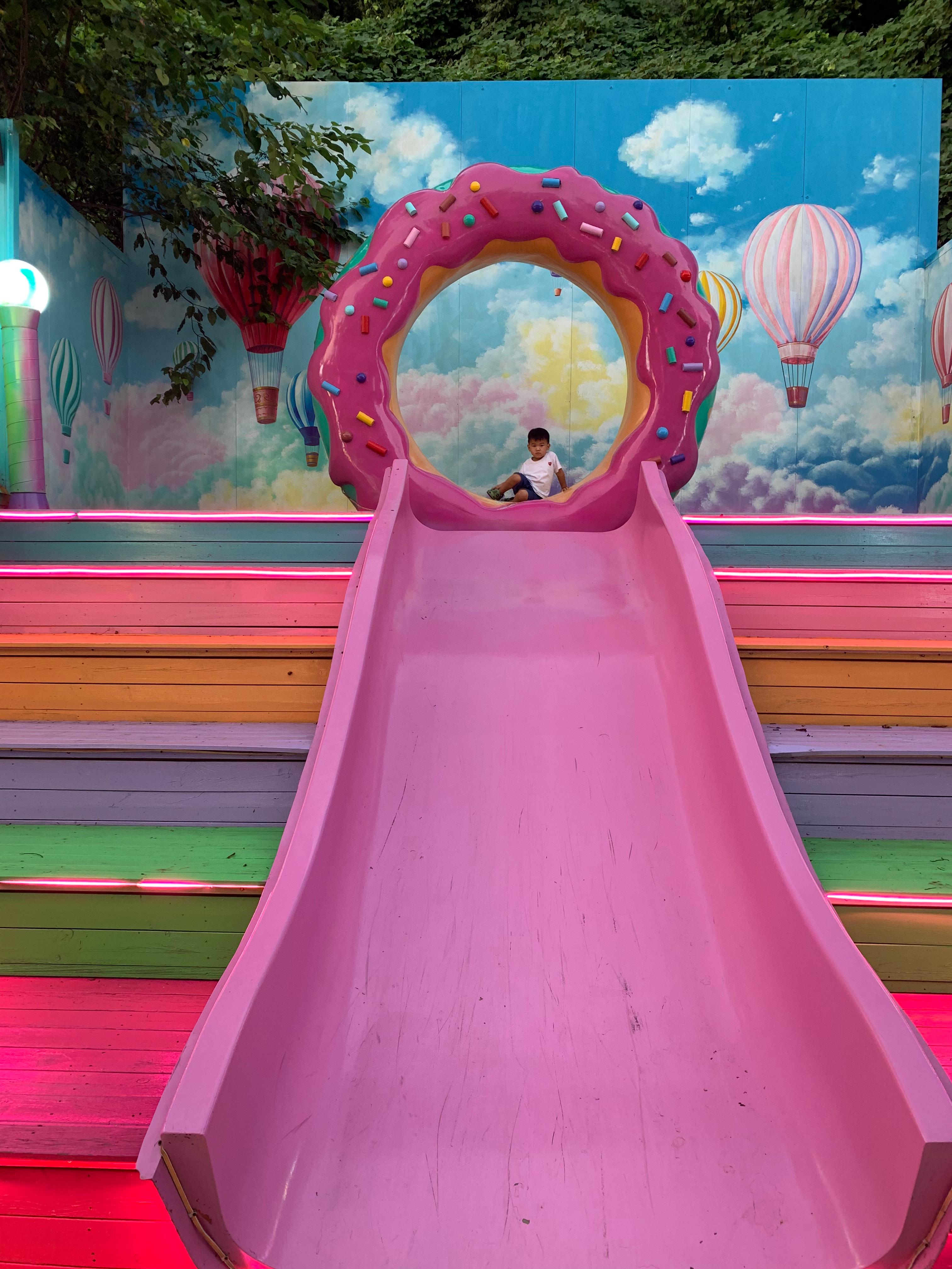 미끄럼틀과 회전목마 같은 놀이기구가 있어 아이들이 신나게 놀 수 있습니다.