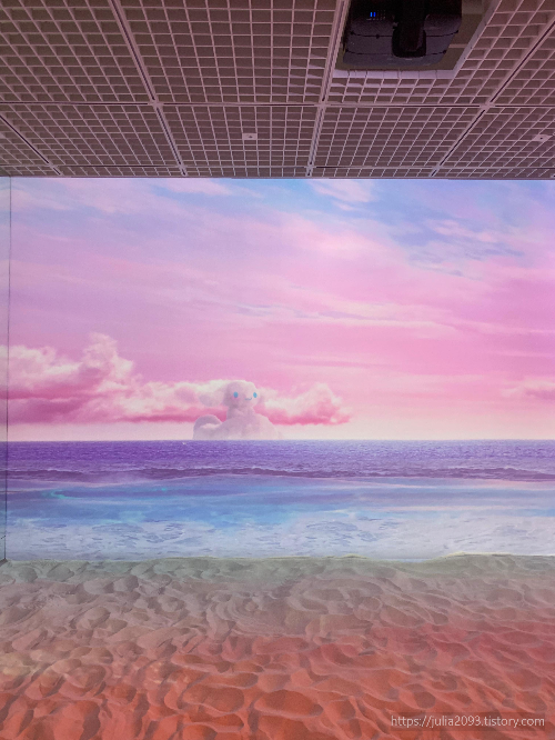전시의 하이라이트! 해변을 모티브로 한 바닷가 섹션은 실제 모래가 있어 아이들이 모래 직접 체험하여 모래놀이도 할 수 있도록 되어있습니다. 인기 최고!😁