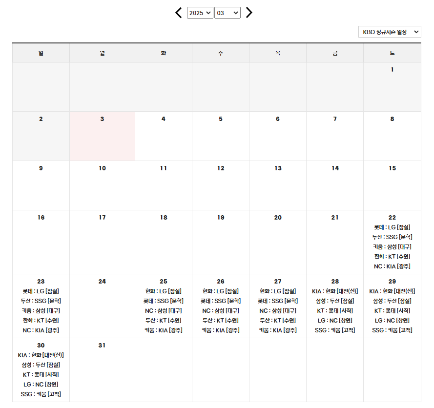 이 외에도 KBO 정규시즌 일정은 아래와 같습니다.
